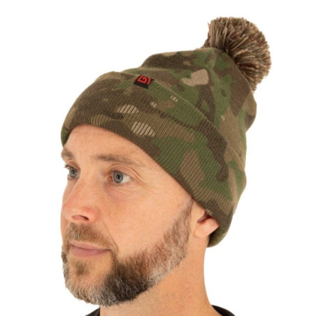 Czapka z pomponem w uniwersalnym rozmiarze, z wyjątkowym wzorem kamuflażowym, nowość w naszej ofercie odzieży wędkarskiej. Ta czapka do połowu karpi jest wykonana z supermiękkich materiałów, które zapewniają doskonałe ciepło i wygodę.