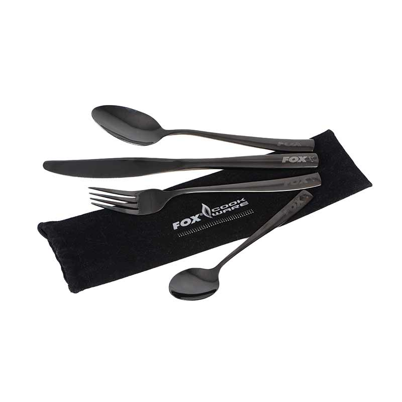 Zestaw Fox Cookware Black Stainless Cutlery Set to idealne połączenie funkcjonalności i stylu, które przenosi komfort spożywania posiłków na wyższy poziom, nawet na łowisku.