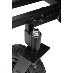 Koła Swivel Wheel można łatwo, w ciągu paru sekund zamontować do dowolnej z naszych taczek transportowych 4 Wheel lub taczek Power Transporter, dzięki czemu użytkownik ma łatwe sterowanie kołami z tyłu.