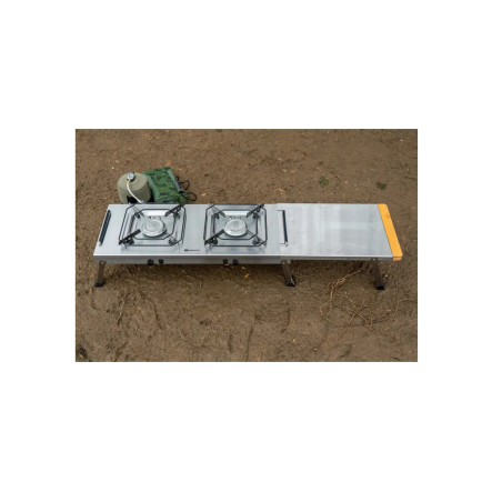 Wyposażony w dwa palniki hybrydowy model łączący Quad Connect Pro Stove i Grilla BBQ zapewnia przenośne, wytrzymałe i proste rozwiązanie do wygodnego gotowania w podróży. Niskoprofilowa składana konstrukcja ma wytrzymałą termicznie i łatwą do czyszczenia konstrukcję ze stali nierdzewnej, którą można schować do torby transportowej. Prosty i bezpośredni interfejs obejmuje przycisk zapłonu i pokrętło sterowania gazem, co pozwala na precyzyjną regulację wielkości płomienia. Rura podgrzewająca otacza palnik, aby zapewnić wydajną pracę urządzenia, szczególnie w niskich temperaturach, poprzez optymalizację odparowywania gazu. W połączeniu z pokrywą pojemnika z gazem EcoPower USB Heated Gas Canister Cover (sprzedawaną oddzielnie) gaz jest delikatnie podgrzewany, aby zapewnić optymalną wydajność paliwową. Idealny do użytku na blacie stołu, ławce lub półce. Gumowe nóżki na składanych podpórkach pomagają urządzeniu pozostać na swoim miejscu i chronić delikatne powierzchnie. Podstawka pod garnek z gumową nakładką zapewnia stabilność naczyń. Podwójne gumowe uchwyty po bokach pozwalają na łatwe przesuwanie urządzenia podczas użytkowania, a także na wysuwanie lub chowanie. Stolik boczny można po prostu wsunąć na dowolny koniec CookStation, w zależności od preferencji i wymagań przestrzennych, oferując solidną, płaską i czystą, rozszerzoną powierzchnię do przechowywania lub przygotowywania żywności.