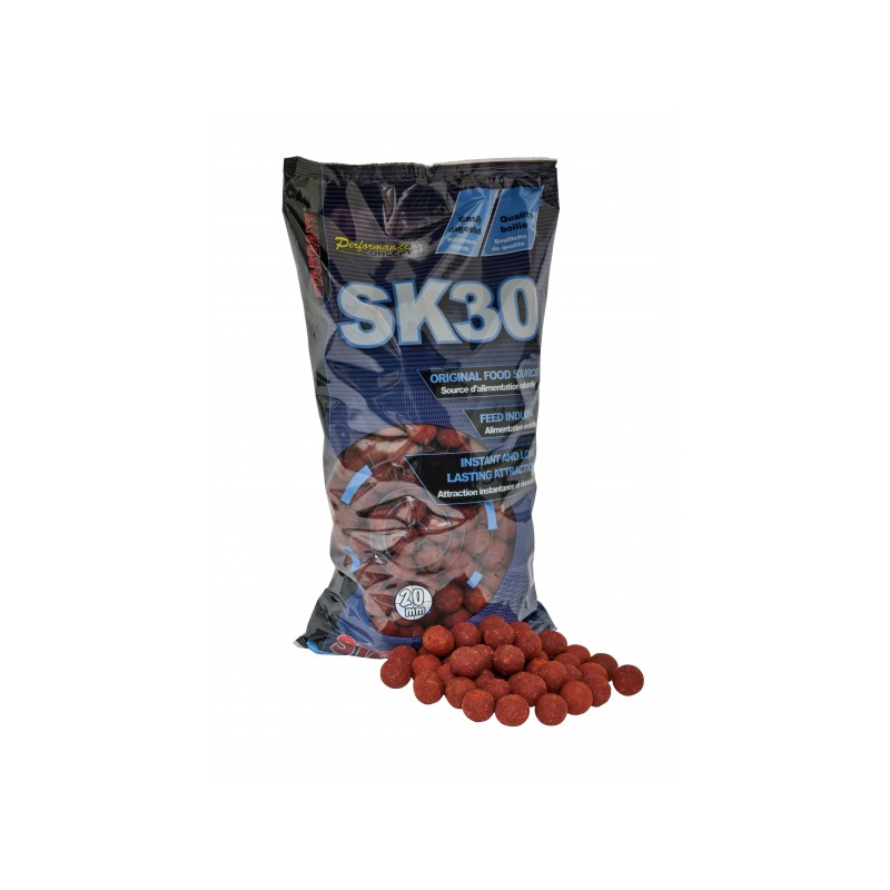 Kulki proteinowe Starbaits PC SK30 - Stworzone z wysokiej jakości surowców mięsnych uznanych za swoje atrakcyjne zasady, takie jak: mączka rybna suszona w niskiej temperaturze, rozpuszczalne ekstrakty białek rybnych, ekstrakty morskie i powiązane z rozpuszczalnymi atraktantami z kałamarnicy i kryla, „SK 30” ma profil aminokwasowy, a także profil kwasów tłuszczowych pozwalający zaliczyć ją jako niezbędną przynętę przy selekcji dużych ryb. Wzmocnione naturalnymi olejami uznawanymi za pobudzające również zmysły węchowe i smakowe. Przynęta łatwo strawna szybko przyzwyczaja, a nawet uzależnienia ryby podczas długotrwałego nęcenia bez zjawiska nasycenia!