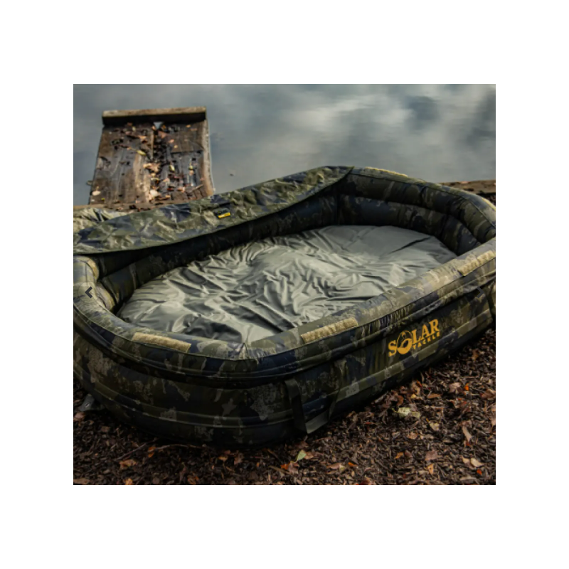 Dmuchana mata karpiowa, która bezpiecznie oddziela przetrzymywaną rybę od podłoża. Konstrukcja maty bazuje na bardzo popularnym modelu SP Inflatable Mat z tym, że jest od niej nieco większa. Dzięki wysokim, dmuchanym boczkom oraz wbudowanej nakrywie zapinanej na rzepy, ryba znajdująca się wewnątrz nie wypadnie z niej. Wytrzymała, gruba konstrukcja jest zabezpieczona przed przetarciem. W komplecie pompka oraz pokrowiec transportowy.