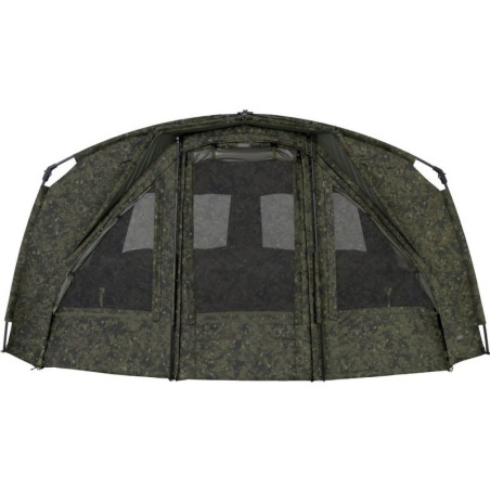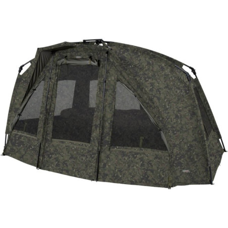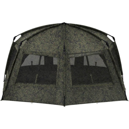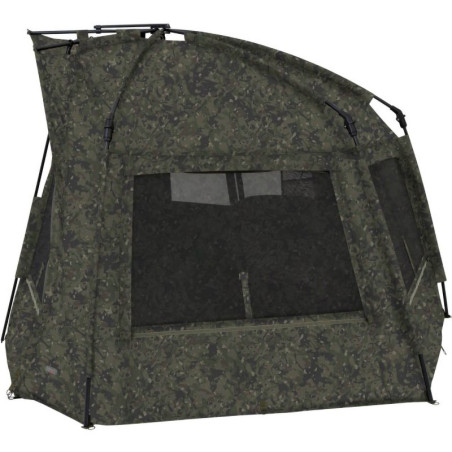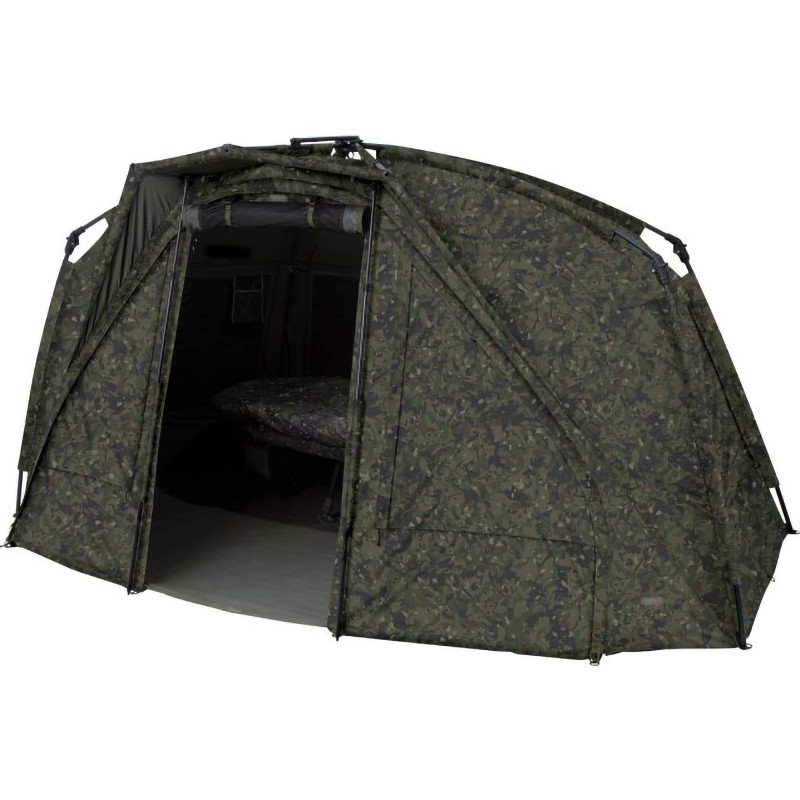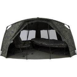 Najszybsze i najłatwiejsze w montażu namioty stały się jeszcze lepsze dzięki wprowadzeniu fenomenalnego Tempest RS 150 Camo. Podstawą tego jednoosobowego namiotu wędkarskiego jest słynny, opatentowany blok zawiasów, pozwalający na łatwą i szybką rozbudowę. Czas rozbudowy, użyteczność i funkcjonalność zostały jeszcze bardziej ulepszone dzięki systemowi Rapid Knuckle System®, umożliwiającemu zablokowanie wszystkich pięciu głównych kijów w jednej, bezwysiłkowej czynności. Prosty, bezpieczny i mocny montaż namiotów nigdy nie był łatwiejszy. Dodatkowe ulepszenia Rapid Shelter obejmują wbudowany daszek, aby zminimalizować przedostawanie się wody do drzwi i wokół nich, a daszek ten można jeszcze bardziej zwiększyć, aby zapewnić jeszcze większy zasięg dzięki dodaniu daszka Skull Cap. Tylna część namiotu jest bardziej płaska niż w poprzedniku, co zapewnia optymalną równowagę między wewnętrzną przestrzenią do przechowywania, możliwością dopasowania do pływania i aerodynamiką. Przepływ powietrza przez namioty został poprawiony dzięki Adaptive Ventilation® na sześciu otworach wentylacyjnych (cztery z tyłu i dwa z przodu), ułatwiając przepływ powietrza nawet podczas deszczu. Cztery tylne otwory wentylacyjne można wysunąć, aby stworzyć zacienione obszary, które w połączeniu z daszkiem Skull Cap mogą obniżyć temperaturę wewnętrzną o kilka stopni. Aby zapewnić optymalne przechowywanie, dostępne są cztery wewnętrzne kieszenie, po dwie z każdej strony i dwie z przodu. Te z przodu mają wiszącą pętlę, w której można przechowywać niezbędne rzeczy, takie jak odbiornik, a nawet kurtkę, aby szybko wyjść w niesprzyjających warunkach pogodowych.