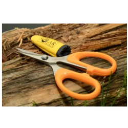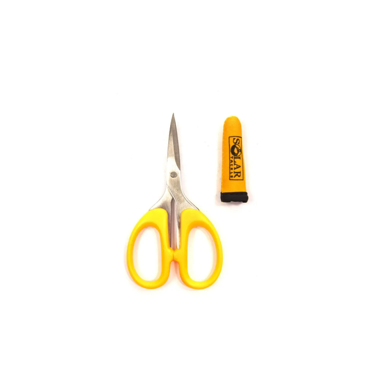 Bardzo ostre nożyczki Solar z ząbkowanymi ostrzami, które równo przecinają wszystkie plecionki, żyłki i fluorocarbony.