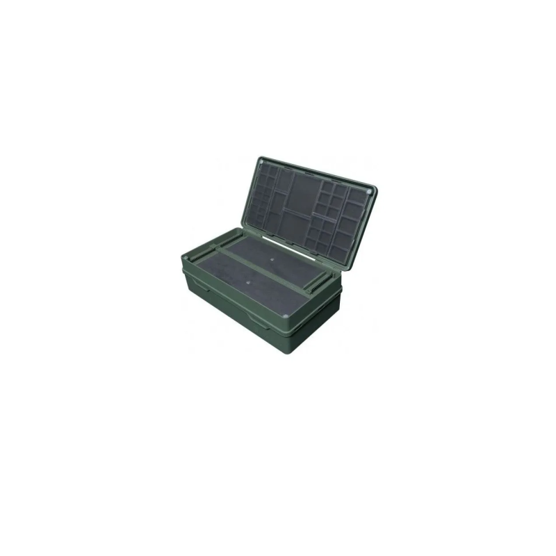 To samo pudełko Armoury Tackle Box, które wszyscy znamy i kochamy, ale teraz z nową pokrywą, która oferuje dodatkowe 38 małych przegródek, idealnych na krętliki, kółka, koraliki i wiele więcej. Posiada łącznie 67 przegródek o różnych rozmiarach, które pomieszczą szeroką gamę przedmiotów, takich jak: nożyczki, haczyki, przypony, narzędzia wielofunkcyjne i igły, aż po mniejsze elementy sprzętu, takie jak koraliki haczykowe, krętliki i pierścienie przyponowe. Wszystko ma swoje miejsce w Armoury Pro. Nowa pokrywa Armoury Pro ma również linijkę pomiarową na zewnątrz pokrywy, która zapewnia dokładne pomiary przyponów. Armoury Pro Tackle Box jest odporne na warunki atmosferyczne i wytrzymałe dzięki solidnej konstrukcji z tworzywa ABS.