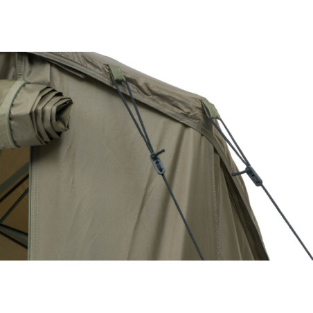 Unikalny zestaw do parasola Mivardi Session Umbrella XL. Ten rewolucyjny element zestawu nadaje temu niezwykle popularnemu parasolowi zupełnie nowy wymiar i funkcjonalność. Pozwala w kilka chwil przekształcić podstawowy parasol w wyjątkowo przestronny i stabilny brolly. Zestaw zawiera pełne panele boczne i krótkie drążki napinające z szybkimi adapterami do montażu masztów. Końce drążków napinających są wyposażone w solidne klipsy, które umożliwiają szybkie i bezpieczne mocowanie bezpośrednio do wytrzymałych żeberek z włókna szklanego parasola Session Umbrella XL. Aby dopełnić konfigurację brolly, wystarczy użyć dwóch masztów napinających, tradycyjnie umieszczonych wzdłuż przedniego wejścia, aby podeprzeć przedni panel. Dla jeszcze większej stabilności w ekstremalnych warunkach można dodać dwa dodatkowe maszty napinające, biegnące ukośnie wzdłuż ścian bocznych w kierunku tyłu. Brolly stworzone przy użyciu tego zestawu oferuje imponującą przestrzeń wewnętrzną – z łatwością pomieści duże łóżko, krzesło, stół, a jednocześnie zapewni miejsce na bagaż. Jego konstrukcja pozwala również na szybkie rozkładanie i składanie. Dzięki płaskiej tylnej ścianie, pionowym panelom bocznym i płaskiej przedniej części, przestrzeń wewnętrzna jest efektywnie wykorzystana i ma praktyczny, prostokątny kształt. Prawie cała przednia ściana składa się z otwieranego panelu drzwiowego wyposażonego w duże, trójwarstwowe okno (osłona nylonowa / przezroczyste PCV / moskitiera). Zestaw czterech masztów sztormowych jest dostępny w osobnym zestawie stabilizującym, który umożliwia również rozstawienie parasola bazowego ze ścianą boczną na czterech masztach, bez użycia centralnego masztu. Maszty sztormowe są również oferowane oddzielnie w paczkach po dwie sztuki. Kotwiczenie odbywa się za pomocą wytrzymałych śledzi biwakowych, dostarczanych z parasolem Session XL.