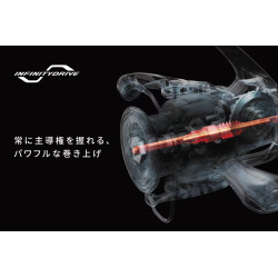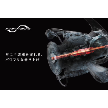 przekładających się na jego wytrzymałość. Najnowsza odsłona tego kołowrotka została wzbogacona o zaawansowaną technologię napędu InfinityXross. Większe zęby przekładni głównej sprawiają, że jest ona teraz o wiele wytrzymalsza od klasycznej, odkuwanej na zimno przekładni Hagane Gear, co zapewnia kołowrotkowi znacznie wyższą moc i odporność na ekstremalne przeciążenia. Niebywale gładka praca przy zwiększonej mocy to z kolei zasługa technologii napędu InfinityDrive. Jest to uzupełnienie technologii X-SHIP, a połączenie to gwarantuje lekkość zwijania i dużą moc użytkową, co okazuje się niezastąpione w trakcie holu naprawdę dużej ryby. Nie zabrakło również sprawdzonej technologii SilentDrive, oraz zębatek Micromodule II-generacji, oferujących cichą i niewyczuwalną pracę.
